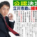 【残念】東京都 立川市議会選挙「日本維新の会 公認候補 やなぎさわ たかお」