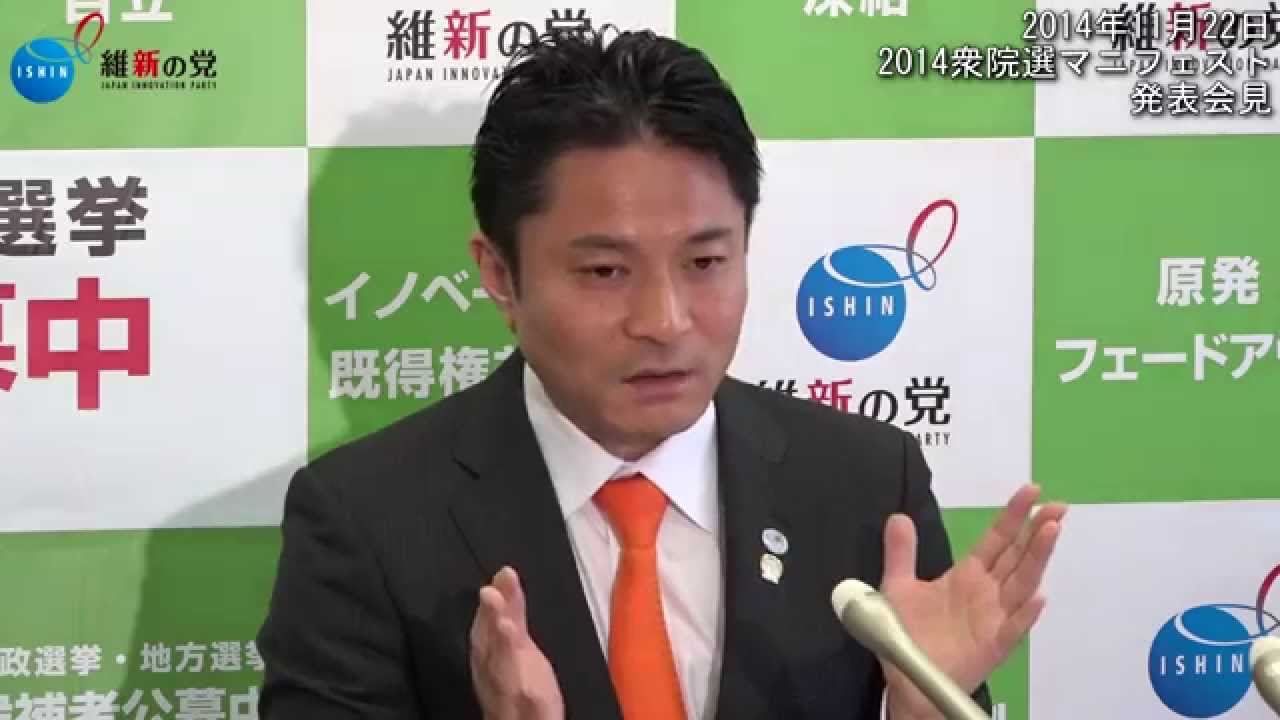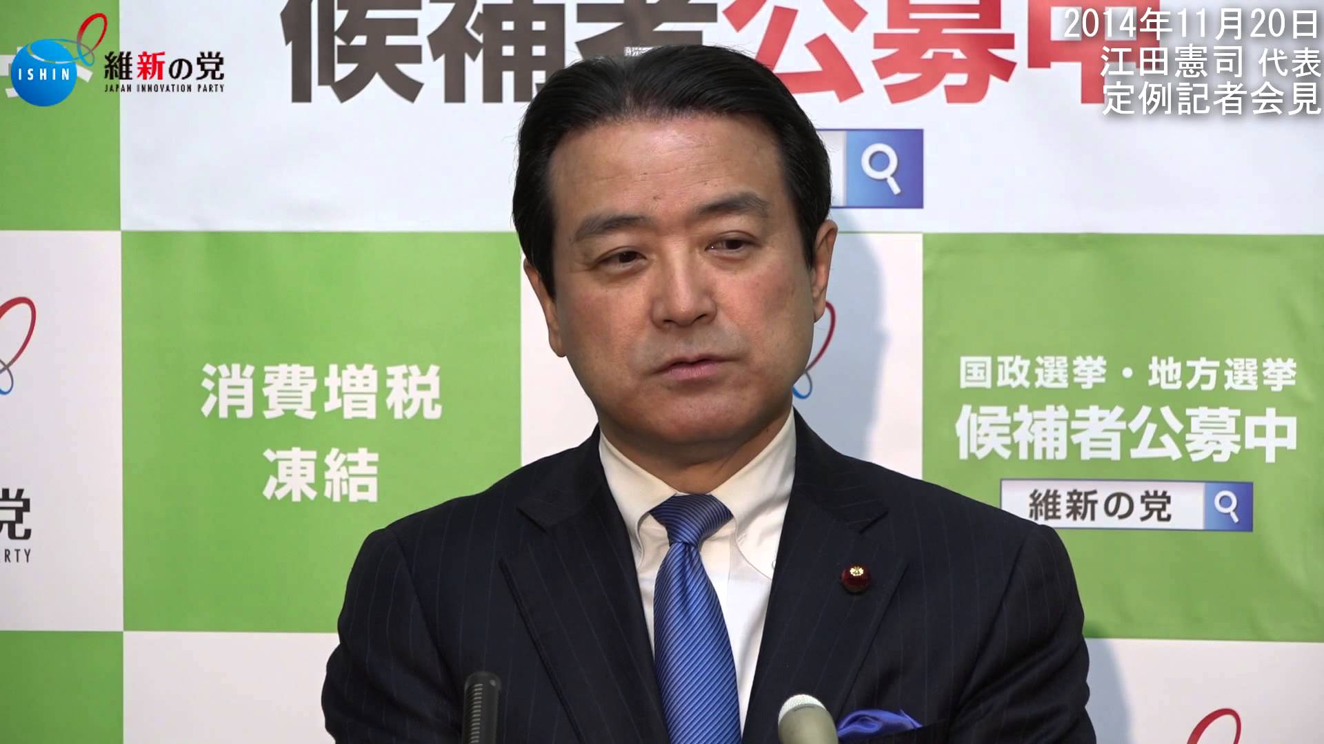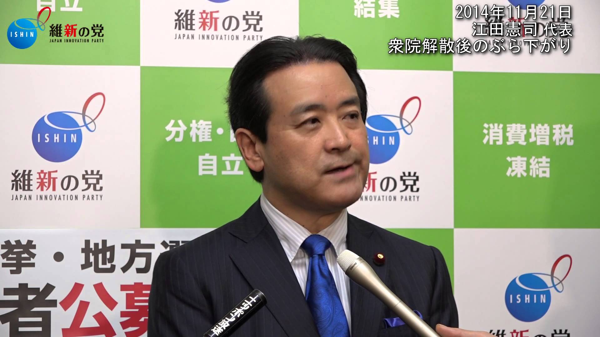 (江田代表ぶら下がり)「安倍自民党にも出来ない、民主党にも出来ない、本当の改革、しがらみの無い維新の党だからこそ出来る。大阪では、もうやって...